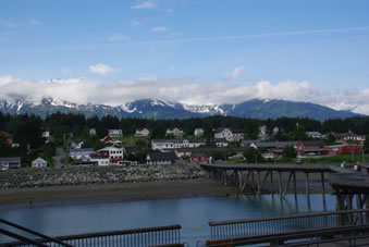 Het was maar een paar uur varen naar Haines en toen wij ’s morgens weer aan dek kwamen, was het schip afgemeerd.