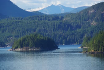Het Alaska avontuur voor ons is voorbij, nu begint voor ons de ontdekking van een stukje Canada. En wat voor stukje. We voeren door smalle stukken tussen eilanden met prachtige natuur. We naderden de bewoonde wereld. Da zag je op de hellingen van de bergen waar omgezaagde stammen lagen. Een stuk verder zagen we twee bootjes een heel veld met stammen vervoeren. |