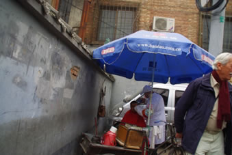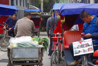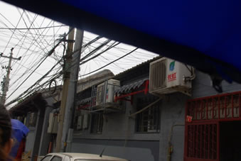 Vandaag gaan we naar een hutong. Een hutong is een oud deel van de stad waarvan er nu een aantal gepreserveerd worden. Vroeger waren er alleen hutongs. Voor de Olympische Spelen is een groot aantal afgebroken en vervangen door hoogbouw. Veel mensen werden uit hun huis gezet en kregen daarvoor een kleine vergoeding waar ze niet veel mee konden want de nieuwe flats waren niet betaalbaar voor ze. In China kan dit, bij ons is dit ondenkbaar. Men denkt bij ons aan individuele mensenrechten, daar aan collectieve waar ook wat voor valt te zeggen. Rijken hebben tegenwoordig een pied à terre in de hutong omdat het blijkbaar erg aantrekkelijk is; wellicht vanwege het sociale leven daar.