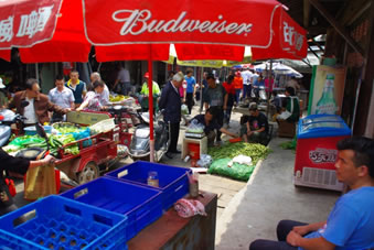 De volgende ochtend bezochten we de Lihou tuin, een van de beroemdste tuinen van China. Hij is al 500 jaar oud en is ontworpen door kunstenaars. Voor deze tuinen werden zelfs rotsen verscheept uit een nabijgelegen groot meer. Deze huizen met de tuinen waren natuurlijk toen ook al voorbehouden aan de happy few. |