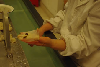 De afgekeurde cocons worden ontdaan van hun inhoud waarna de cocon wordt uitgerekt en als een zakje over een beugel gespannen. Er komen zo’n 80 zakjes over elkaar en als die droog zijn wordt de zijde uitgetrokken tot de grootte van een dekbed en neergelegd. Na een aantal lagen van deze zijde komt er een hoes omheen.