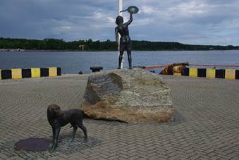Het eerste beeld dat we zagen, was De Jongensdroom. Het staat sinds 2007 op de pier. Het beeld stelt een jongen met zijn hond voor die daar staan om de schepen te verwelkomen die de haven in komen en te zorgen dat iedereen die de haven van Klaipeda verlaat een vriendelijk afscheid krijgt.
