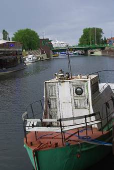 We liepen op een met de hand bediende draaibrug af die net weer open was. Voor die brug bevond zich Het Zwarte Spook met een lantaarn in zijn linkerhand die uit het water klimt. Het bijgeloof komt weer om de hoek kijken. De plaats van dit beeld is niet toevallig want het bevindt zich naast het kasteel waar in 1595 Hans von Heide plotseling een spook zag opdoemen. Dit mystieke schepsel waarschuwde dat de stad misschien een tijd tegemoet zou gaan waarin een tekort zou heersen aan graan en hout. Dit gezegd hebbende verdween het spook weer in de mist. Of de voorspelling uitkwam, vermeldt de geschiedenis niet.