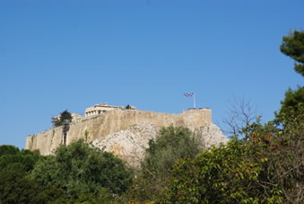 De Acropolis met daarop het Parthenon |