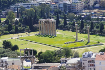 De tempel van Zeus met op de achtergrond de Acropolis |
