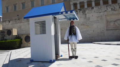 Op wacht voor het parlementsgebouw |