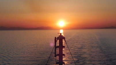 We hebben gedineerd en varen rustig richting Kusadasi in het licht van de ondergaande zon. Morgen wachten ons weer nieuwe prachtige dingen.