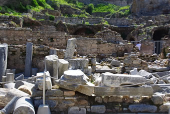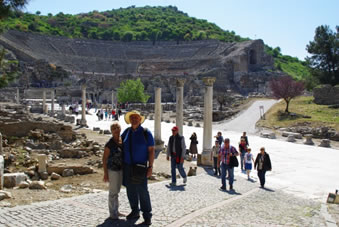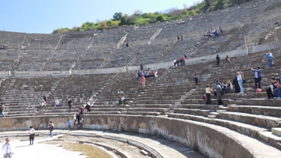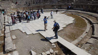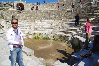 Salçuk, onze gids wacht op ons in het Odeon |