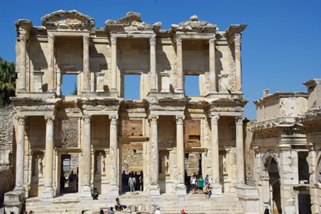 De grootste bibliotheek in die tijd was die van Alexandrië waar Cleopatra heerste, de tweede stond in Constantinopel, de Pergamon en de derde was deze, de Celsus. De geschriften hier waren op schaapshuid geschreven omdat het langer meeging dan papyrus. Er waren ook wel 5000 papyrusrollen, een cadeau van Cleopatra voor haar grote vriend Marcus Antonius die hier woonde.