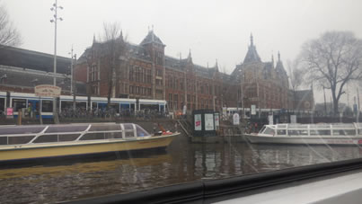 Centraal Station Amsterdam vanuit de rondvaartboot |