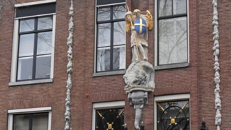 We voeren de in de 17e eeuw gegraven Herengracht in en zagen op een van de gebouwen een afbeelding van St. Joris en de draak, ons al welbekend van een beroemde paleisdeur in Barcelona.