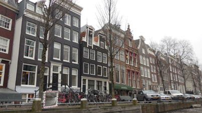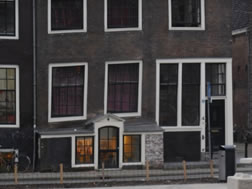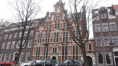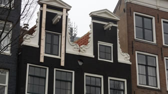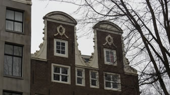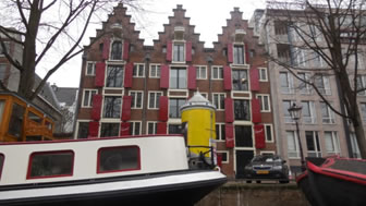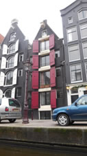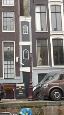 De grachtengordel werd in de Gouden Eeuw bewoond door de rijkste patriciers. Ze hadden veel personeel. De deur onder trap was bestemd voor dat personeel. We zagen vele majestueuze koopmanshuizen uit die tijd met de vele verschillende geveltjes maar ook het om belastingreden zo gebouwde smalste huis. Het smalste huis is aan deze kant een meter breed. Dit is eigenlijk de achtergevel. De gevel aan de andere kant is breder. |