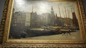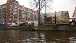 Even later zagen we het Nemo gebouw in de verte liggen met zijn koperen huid die erg vervuilend is door de koperoxide die bij regen in het oppervlaktewater terecht komt. Daarna de grachten in langs de Zuiderkerk(1619) en het Waterlooplein, vroeger het centrum van de Joodse buurt.. We langs de Onbekende Gracht die Monet in 1871 schilderde. Het origineel hangt in Washington.