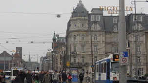 De tram voerde ons langs de beurs van Berlage die de Beurs van Zocher moest vervangen die toen op de plek van De Bijenkorf stond. Tijdens de bouw ( het was klaar in 1903) verzakte het gebouw als deerlijk en moesten de scheuren door metselaars dichtgemaakt worden.