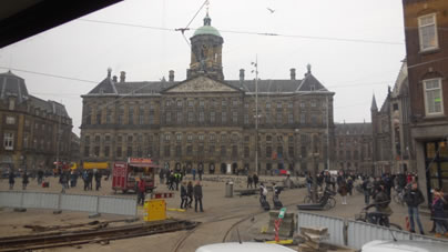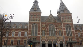De rondvaart was alweer voorbij en we pakten de tram om naar het Rijksmuseum te gaan. De tram reed over het Damrak en het Rokin, ook al weer van die historische plekken. Een rak is een recht stuk vaart. Het vormde indertijd de verbinding tussen de Amstel en het IJ. Via een sluis bij de Dam stroomde de rivier vanuit het 'rak-in' (het Rokin), in het 'buitenrak' (het Damrak), en mondde vervolgens uit in het IJ.