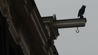 Over de Stadhoudskade liepen we naar het Rijksmuseum. Onderweg zagen we een grote uil op een hijsbalk van een van de gebouwen. Maar bij nader inzien was dat gewoon een beeld; het had ons wel even bezig gehouden.