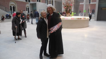 Het was de dag voor de Rembrandt tentoonstelling en Rembrandt liep ook toevallig rond. “Ik wil even met je op de foto”, zei Lucia tegen hem. “Ik heb je zo een lange tijd niet meer gezien”. Hij moest er om lachen en poseerde even voor de foto. |