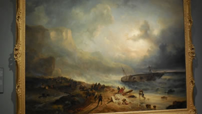 Ook de Romantiek mocht niet ontbreken in ons plaatje. Tijdens de Romantiek werden schilderijen gemaakt waarop alles net iets heftiger werd weergegeven, de wolken dreigender, de golven hoger. Dat is in dit schilderij ook goed te zien.