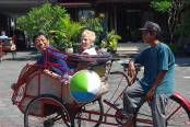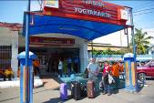 We zijn miljonair!!!!!!!! Ik heb net een paar miljoen gepind. Voelt goed om miljonair te zijn. De treinreis naar Yogyakarta verliep voorspoedig. Onderweg zagen we prachtige taferelen die zo van een schilderij gestolen zouden kunnen zijn. Keurig geordende rijstvelden met op de achtergrond een vulkaan. Wat later in het bergachtige deel de sawa’s op terrassen omgeven door pittoreske huisjes en dorpjes die tegen de bergwand geplakt leken.