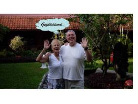 We zaten in een prachtig hotel. Daar lieten we even een foto van onszelf maken om naar Wendy te mailen. Die werd op 19 januari alweer 28 jaar. Ze begint al bejaard te worden. Ik ben benieuwd of het haar op deze leeftijd wederom lukt om Nederlands kampioene latin-american te worden.