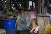 We werden nog verder rondgeleid in het tempelcomplex, maar Marion, Lucia en ik verdwaalden in het aangrenzende dorpje en de markt. We zagen nog een huisje met een eigen waterput die nog in gebruik was. Op de markt lag een oude vrouw tussen haar koopwaar te slapen terwijl de vliegen om een plekje vochten op het vlees dat ze in haar kraam had. Een paar meisje vroegen of ze met ons op de foto mochten. Dat kwam niet omdat ik erbij was hoor want ik was er nog niet toen ze het vroegen. Dit fenomeen kwamen we nog heel vaak tegen. Waarom ze dat graag willen, is me een raadsel.