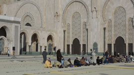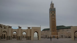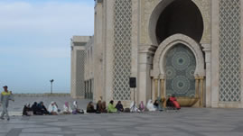 Na het ontbijt vertrok de bus om ons naar een grote moskee in Casablanca te brengen. Deze is deels in zee gebouwd.