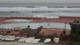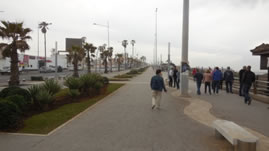 Toen we bij de boulevard La Corniche kwamen, zag je nog de verwoestingen die de storm van twee dagen geleden had aangericht met golven van wel 13 meter hoog. De mensen komen hier na werktijd hun ontspanning zoeken. Ook is het de plek waar jonge mensen op zoek gaan naar een rijke partner.