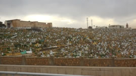 In Rabat reden we langs een enorm grote begraafplaats. Volgens de islam mogen de doden niet gecremeerd worden, dus worden ze allemaal begraven.