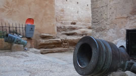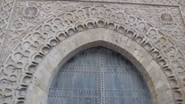 Even later waren we bij een kasteel dat gebouwd is door een bepaalde stam die heel lang geheerst heeft. Kenmerkend voor die dynastie zijn de hoefijzervormige poort- en vensterbogen. Daarboven zie je Sint Jacobsschelpen die het Christendom symboliseren. Deze zijn aangebracht omdat ze zoveel mogelijk invloeden uit hun immens grote rijk terug wilden laten komen in hun architectuur. Het kasteel is later ook nog een piratennest en een legerkazerne geweest. |