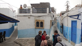 Vervolgens dwaalden we door de wit-blauwe medina van Rabat met de kleine smalle straatjes die verrassende wendingen namen. Het was geweldig. Het wit-blauw is ontstaan doordat de mensen die daar kwamen wonen hun bouwwijze en kleuren meenamen van het Middellandse Zee gebied waar ze vandaan kwamen.