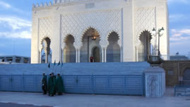 Naast dit gebied heeft indertijd Hassan II de bouw van een necropool geïnitieerd omdat die er nog niet was. In het mausoleum ligt o.a. Mohamed V. Het geheel is gebouwd van geïmporteerd Italiaans marmer, ook de sarcofaag. Om de sarcofaag is ook Aziatisch onyx gebruikt. Het plafond is gemaakt van acaciahout ingelegd met bladgoud. Als je buiten staat en je kijkt naar beneden is het net of het mausoleum op het water is gebouwd. Het is echter Aziatisch onyx dat zo geslepen en gepoetst is dat het erg spiegelt. ’s Avonds is dat niet te zien.