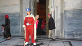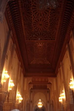 Het is wel typisch 20e eeuwse architectuur. Binnen worden sculpturen en ornamenten veelvuldig herhaald. De koning komt hier twee keer per jaar naar toe om te bidden; op de zesde dag van de ramadan en op de geboortedag van Mohamed. Dit laatste schijnt volgende week dinsdag , 15 januari, het geval te zijn. Vandaag komt hij ook maar om te bidden voor regen. |