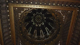 Het acacia houten plafond ingelegd met bladgoud |