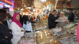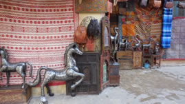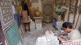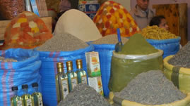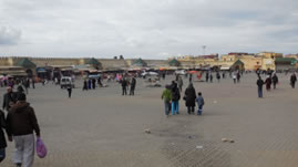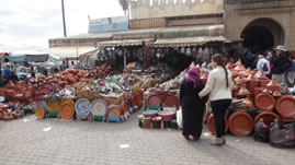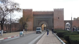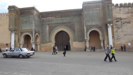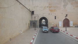 Maar eerst op naar Meknès, eens de hoofdstad en een van de koningssteden. We rijden door de donderdagpoort genoemd naar de dag waarop de verse producten in de stad werden aangevoerd. In de muren zie je gaten. Omdat de muren van leem waren, moesten ze heel vaak gerestaureerd worden. Voor dat werk werden de gaten gebruikt. Natuurlijk waren ze ook een toevluchtsoord voor vele vogels. |