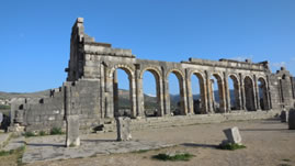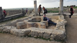 ´s Middags bezochten we de ruïnes van de oude Romeinse stad Volubilis waar je uitkeek op het eerste Arabische dorp ooit daar gebouwd. Uit de verte leek het net een slapende dromedaris.