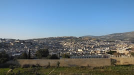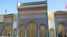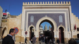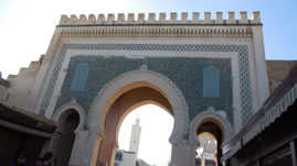 Het oude Fès werd al in 808 gebouwd. We zien daar ook de sierpoort, de Bab Boujloud, in 1913 gebouwd naar Moors voorbeeld. Aan de buitenkant is hij blauw en aan de binnenkant groen. Blauw is de kleur van de hoop en er wordt een welkom mee uitgedrukt en groen is de kleur van de vrede en bij het vertrek betekent het een afscheidsgroet.