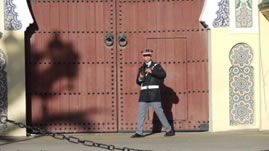 De bus vertrekt op tijd en rijdt eerst langs het koninklijk paleis dat vanaf de 14e eeuw onafgebroken in gebruik is geweest door alle dynastieën. De wachter op de achtergrond wilde niet gefotografeerd worden.