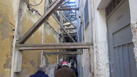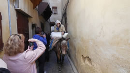 De medina bestaat uit zo’n 9250 smalle straatjes waar je makkelijk kunt verdwalen en waar men met beladen karren loopt die net tussen de vervallen huizen passen. Ook zie je daar zwaar beladen ezels en paarden zich een weg banen door de nauwe doorgangen en die je bij het passeren tegen de muur aan drukken.