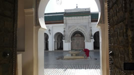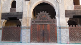 Ergens in de oude medina staat de Madrassa Bouanania moskee. Vroeger was dit een hogeschool, geschonken door koning Abou Inan van de Almeriden dynastie, dezelfde dynastie waar ik eerder over sprak die boven de hoefijzervormige poort St. Jacobsschelpen liet aanbrengen. Het schijnt wel een beetje een vreemd figuur geweest te zijn met aparte ideeën. Waar de school nu staat was een plek waar vuilnis verbrand werd. Hij liet die plek schoonmaken en liet een architect een ontwerp maken. Die zei op gegeven moment dat het niet haalbaar was omdat het te duur was waarop de koning zei: “Schoonheid kent geen prijs”. De koning is later door zijn bodyguard vermoord.