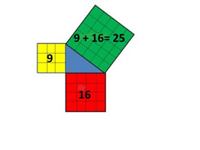 Stratenmakers gebruiken gewoon de stelling van Pythagoras. Het vierkant dat je vormt van de schuine zijde van een rechthoekige driehoek bevat net zoveel stenen als van de vierkanten aan de rechthoekzijden samen. Maar goed, dit terzijde.