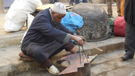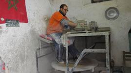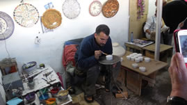 De pottenbakker drijft de draaischijf nog met zijn voeten aan en ook de draaitafel voor het beschilderen van het aardewerk is handwerk. De ovens waren indrukwekkend groot.