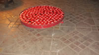 Op deze schijven staan nummers. Je gooit met een muntje en als hij er op blijft liggen heb je iets gewonnen |