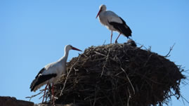 We dronken koffie in een Marokkaans koffiehuis met uitzicht op een aantal ooievaars die af en aan vlogen. |