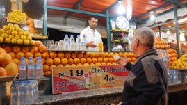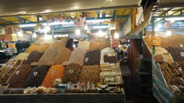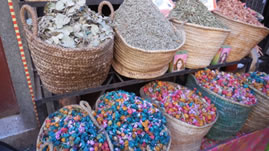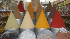 Het paleis ligt al weer achter ons en we zijn op weg naar de kruideniers, gelegen in de Joodse wijk. Daar krijgen we een verhandeling over allemaal kruiden die je ook kunt kopen. Na afloop liepen we door de souk naar de bus die ons naar het hotel bracht om te lunchen.