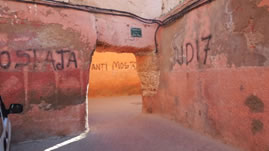 Daarna slenterden we onder aanvoering van een Arabische gids door het labyrint van Marrakech. Met de foto’s neem ik jullie mee op deze tocht door het labyrint.