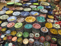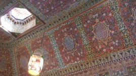 Verschillende manieren van decoreren komen naar voren. Op de cederhouten plafonds zijn prachtige bloemschilderingen aangebracht. De kracht van de herhaling versterkt de schoonheid van deze kunstuiting. |