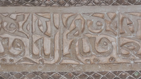 Gipsrand met geschrift, de z.g. kufi kalligrafie |