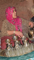 Na de lunch reden we de besneeuwde toppen van de Atlas tegemoet om in de bergen thee te gaan drinken bij een authentieke Berber familie. Het woord Berber is nog afkomstig van de Romeinen. Voor hen waren het barbaren. Van dat woord is Berber afgeleid.