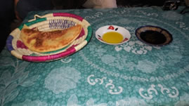 We dwaalden wat in het huis rond dat drie gezinnen huisvestte, opa en oma en hun twee zoons met hun vrouwen en kinderen. Er werd op authentieke wijze muntthee bereid en uitgeschonken. Daarbij konden we samen het brood breken en indopen in olijfolie en/of honing. Een klein jongetje van nog geen twee jaar oud kwam ons nog vermaken en gaf mij de “high five”. Zelfs hier bij de Berbers in Marokko!